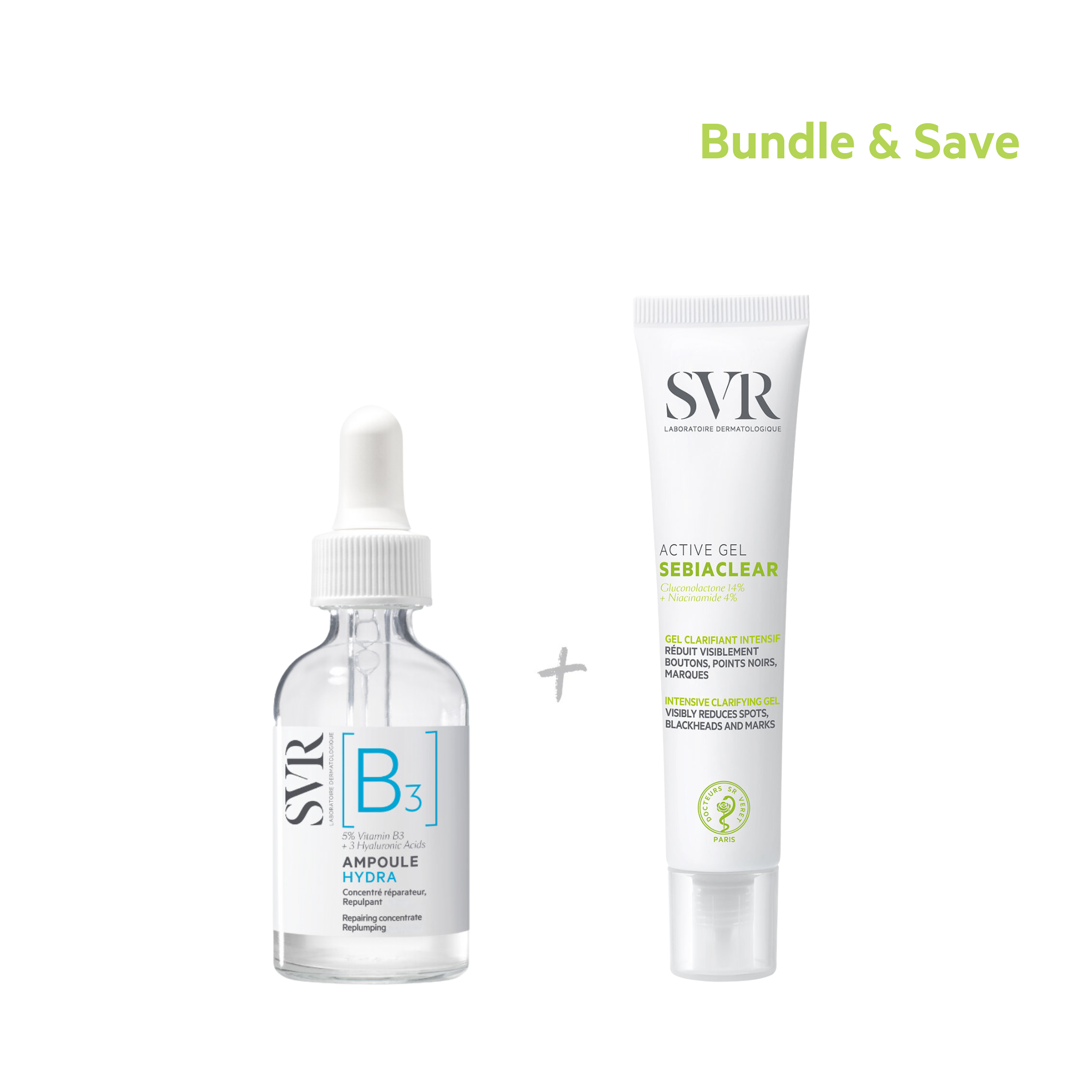 A powerful pair to calm, hydrate, and visibly improve sensitive, blemish-prone skin. Featuring [B3] Repairing Concentrate for deep moisture and Sebiaclear Active Gel to target imperfections and refine texture for a clear, healthy-looking complexion.